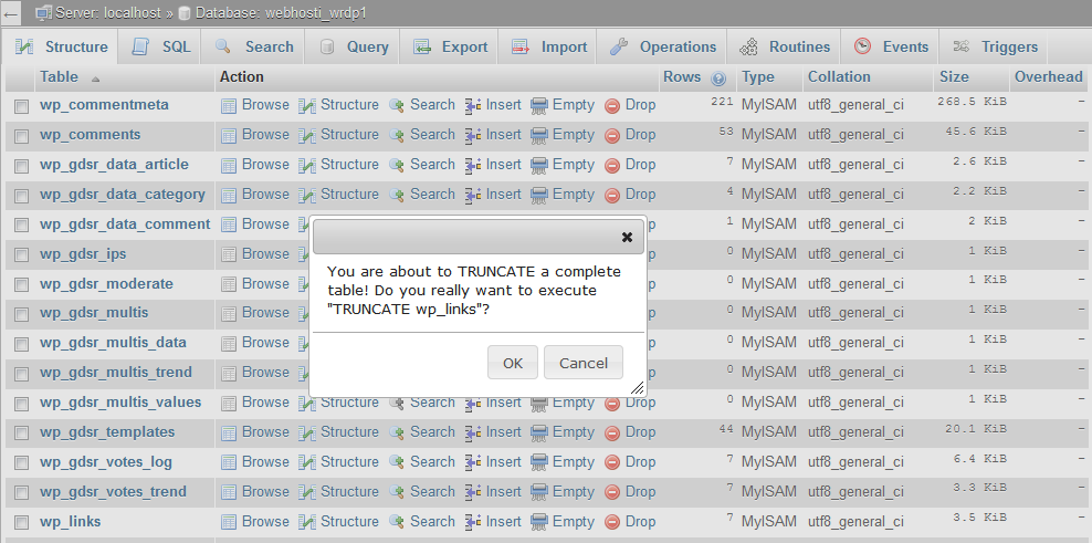 You can empty your database table using the Empty option. It will remove the records and keep the table blank.