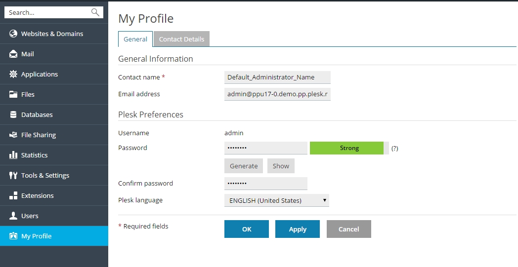 Managing your User Account in Plesk