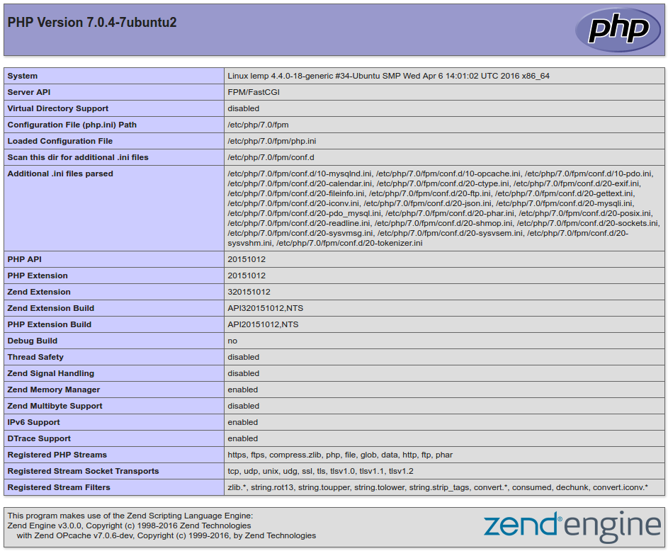 Your LEMP stack should now be completely set up. We can test it to validate that Nginx can correctly hand .php files off to our PHP processor.